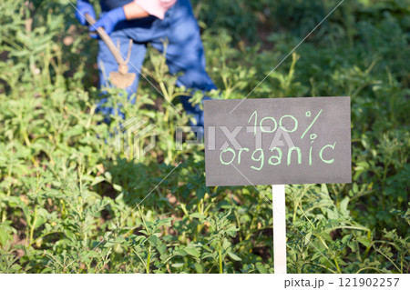Farmer working in the organic vegetable garden