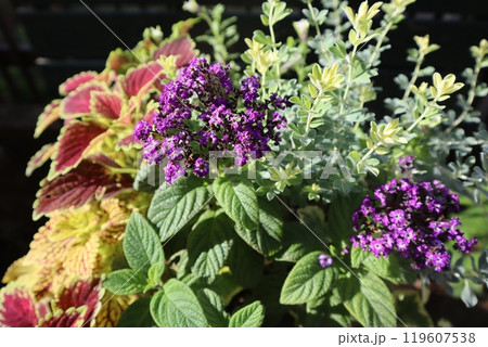 ヘリオトロープとコリウスの寄せ植え