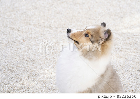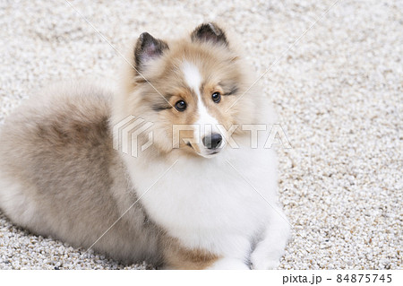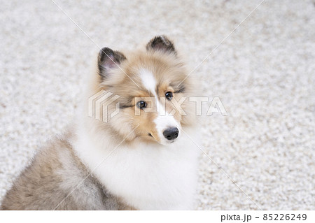 お座りしたシェトランドシープドッグの子犬のバストアップ