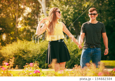 Two tourists having fun on romantic summer vacation in Poland - Holidays and traveling lifestyle concept. Young couple walking street on vacation. Happy couple of travelers enjoying.