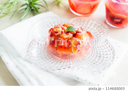 秋の味覚の柿とキウイの素材写真 レッドキウイの断面