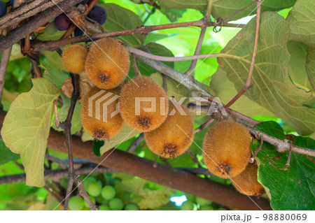 美味しそうに実ったキウイフルーツの実