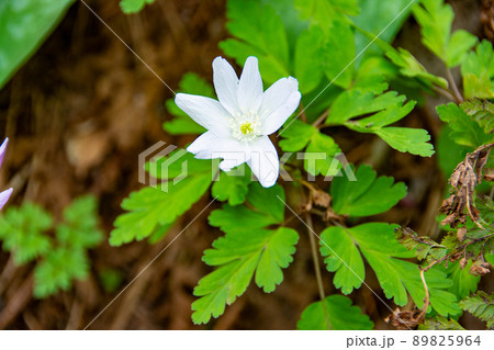 白い「キクザキイチゲ」の花 一輪(赤城自然園/群馬県渋川市)