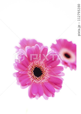 Delicate pink gerbera daisies in soft light on a pastel background during afternoon