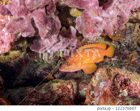 アカハタ、ソラスズメダイ他の群れ。静岡県伊豆半島南伊豆町中木ヒリゾ浜-2025年
