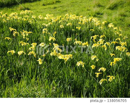 信濃川・やすらぎ堤の黄菖蒲(きしょうぶ)の花