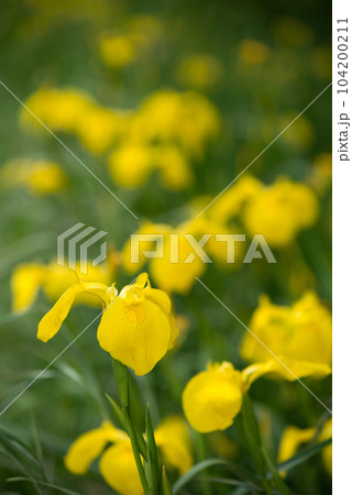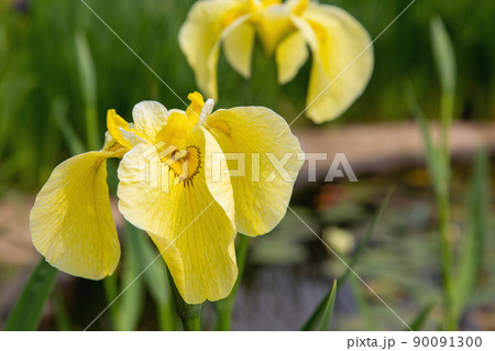 鮮やかな黄色の黄菖蒲の花