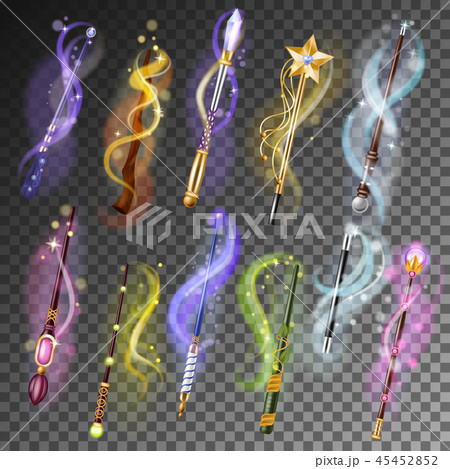 Magic wand vector miracle stick fantasy magician wizard object illustration magical set of fairytale