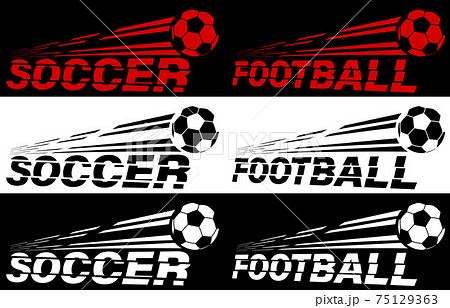 soccer, football lettering broken by flying soccer ball. Sport equipment. Active lifestyle. Vector