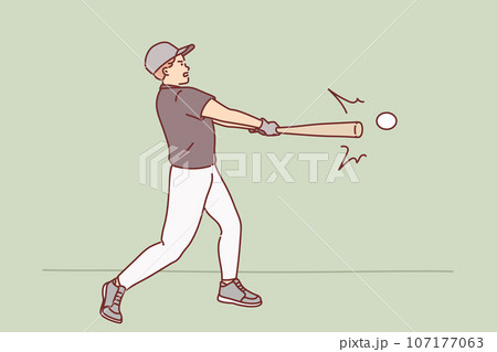 stick figere, player man hits ball with sports wooden baseball bat. American national sport. Active lifestyle. Vector
