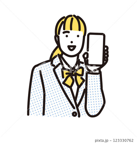 シンプル イラスト スマートフォンを持つ女子高生のセット