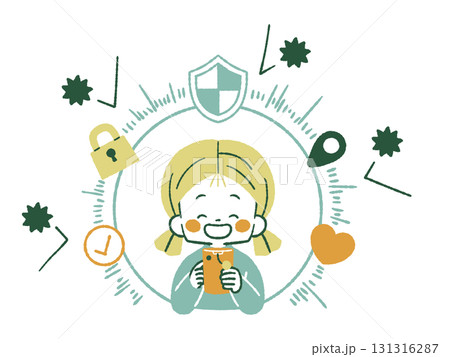スマホのセキュリティによって保護されている女の子-ガッシュ