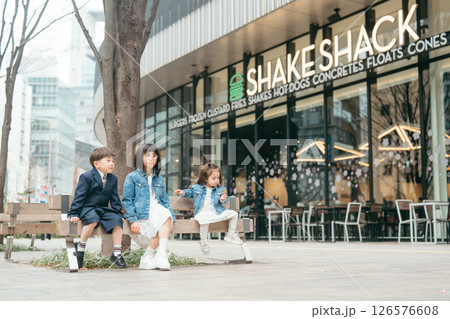 7歳と5歳の姉弟、可愛い七五三姿、ロケ撮影