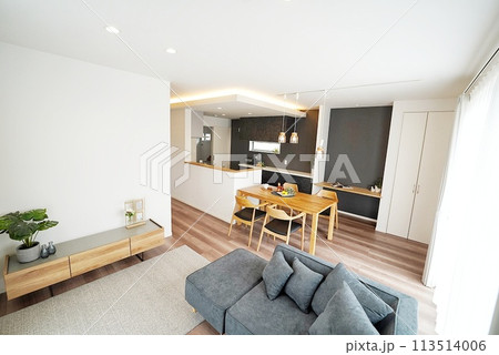 お洒落な明るいリビングダイニングルーム