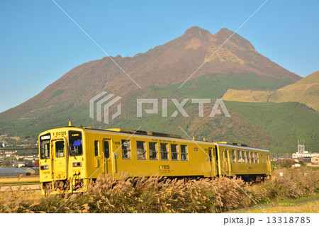 冬の由布岳と黄色の列車(JR九州 キハ125形)