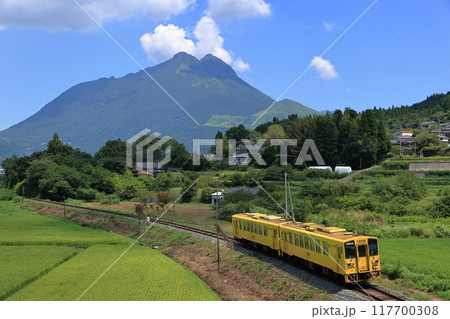 由布岳と観光列車「かんぱち・いちろく」(JR九州)