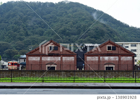 敦賀赤レンガ倉庫脇に置かれるキハ28形(福井県敦賀市)
