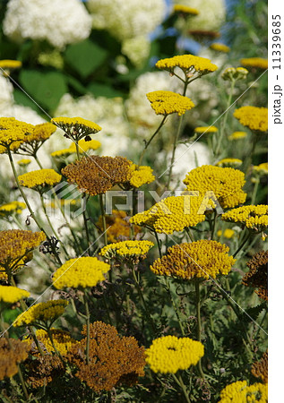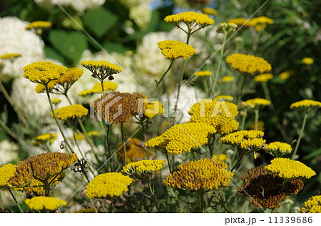 ノーラレイの白い花と黄色い花のキバナノコギリソウ