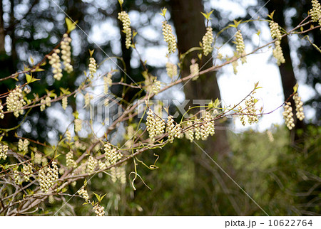 早春の里山のキブシ