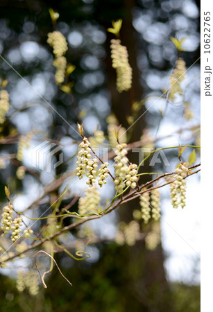 春の素材・淡黄色のキブシの花房・縦位置