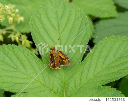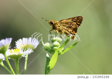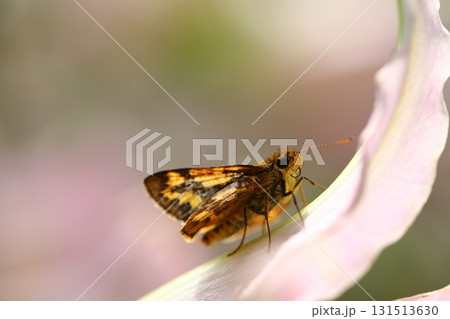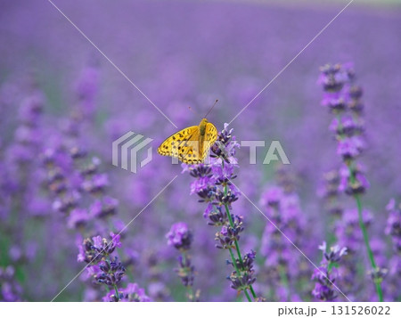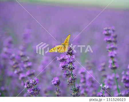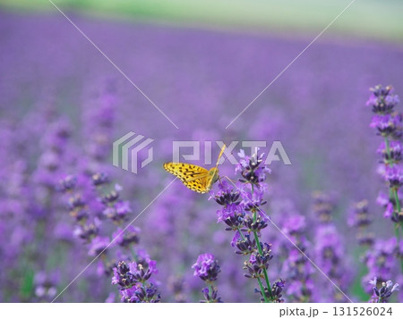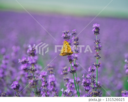 夏の北海道南富良野 かなやま湖 ラベンダー園のキマダラセセリ