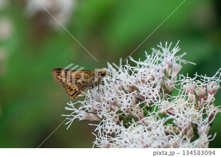 キマダラセセリ(30 mm程度)美しい白い花と蝶。