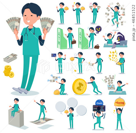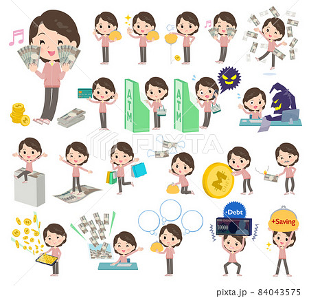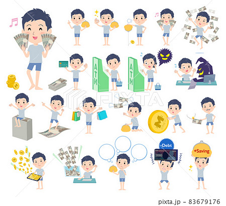 お金や経済に関するスポーツウエアを着た中年男性のセット