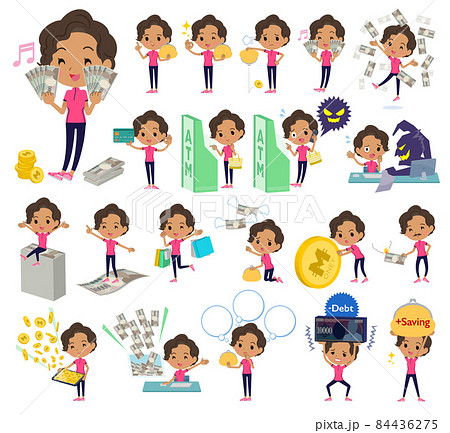 お金や経済に関するスポーツウエアを着たアフリカ系アメリカ人女性のセット