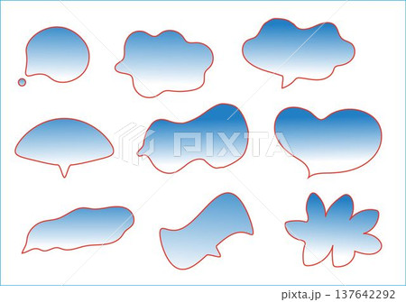 吹き出しセット・手描き風・グラデーション(ブルー)