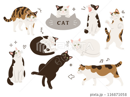 三毛猫のイラスト素材セット