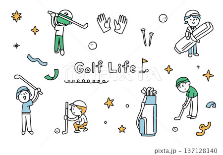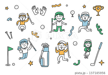 ゴルフが趣味の老若男女のイラストセット