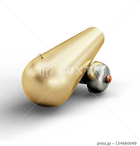 Golden Metallic Cannon on a Minimalist White Background. 3D Illustration. File with Clipping Path