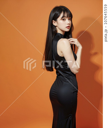 オレンジのドレスを着た素敵な女性(AI生成画像)