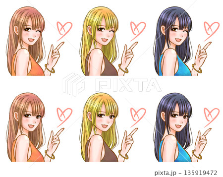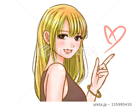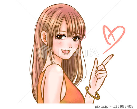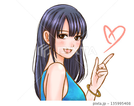 指さしする大人っぽいギャルのイラスト素材