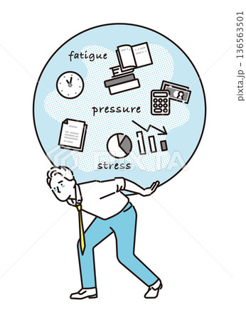 シンプル イラスト 重圧を背負うビジネスマンの男性