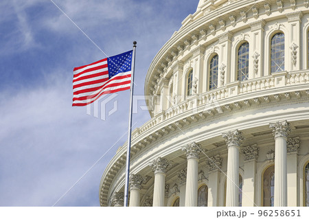 The United States Washington DC Capitol with American flag