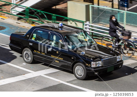 のりもの斜め前から見たタイプ違いのタクシーキャブ