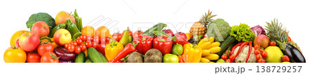 Fresh Colorful Assortment of Fruits and Vegetables on White Background