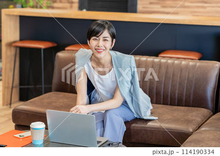 カフェで仕事をするビジネスウーマン