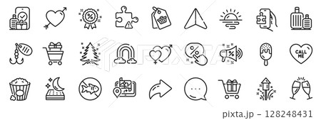 Sale tag, Ice cream and Puzzle line icons pack. Share, Message, Paper plane icons. Discount button, Fireworks, Rainbow web icon. Gps, Sale megaphone, Discount pictogram. Vector