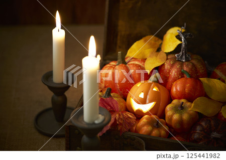 古いトランクに詰め込まれたカボチャ ハロウィンイメージ