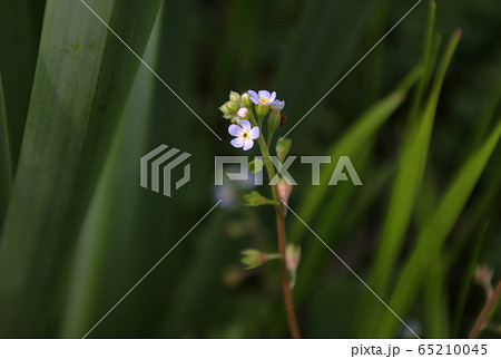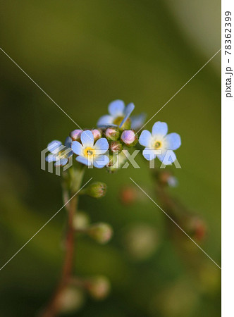 キュウリグサの極小で水色の花と蕾 マクロ撮影