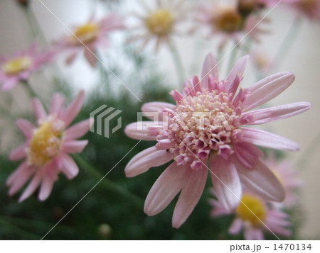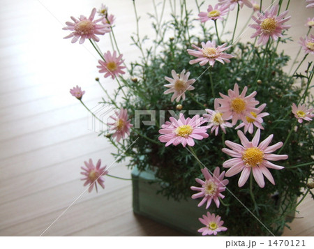 ピンク色のマーガレット(キューティーマイス)の花のある風景