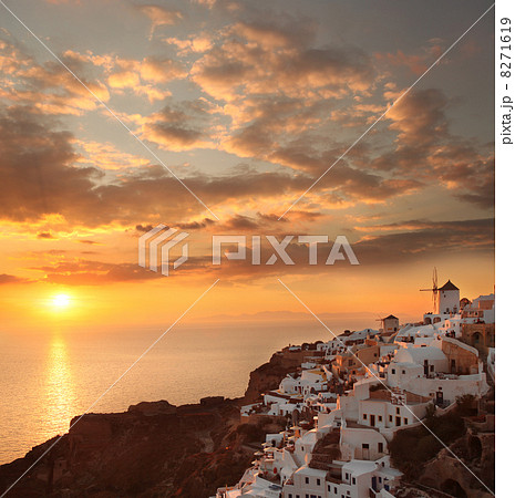 Santorini island with windmills in Greece