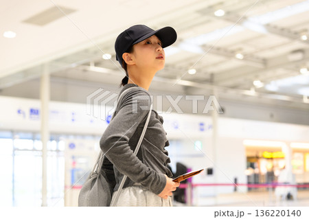 空港で案内表示を探す女性 ■撮影協力:関西国際空港(KIX)