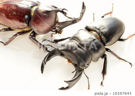 国産オオクワガタと国産カブトムシの勝負 白背景