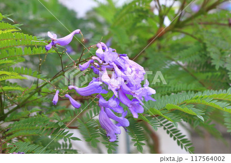 ジャカランダの木が青紫色の花を咲かせています。 学名はJacarandaです。
