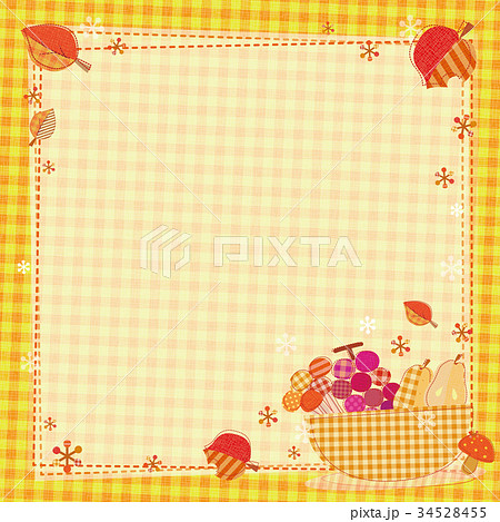 秋 素材 チェックのキルト風フレーム イエロー 黄色