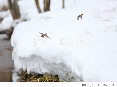 雪上を飛ぶキレンジャク
