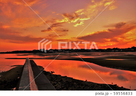 朝日 朝焼け 風景 山口県 宇部市 岐波海水浴場 キワ・ラ・ビーチ